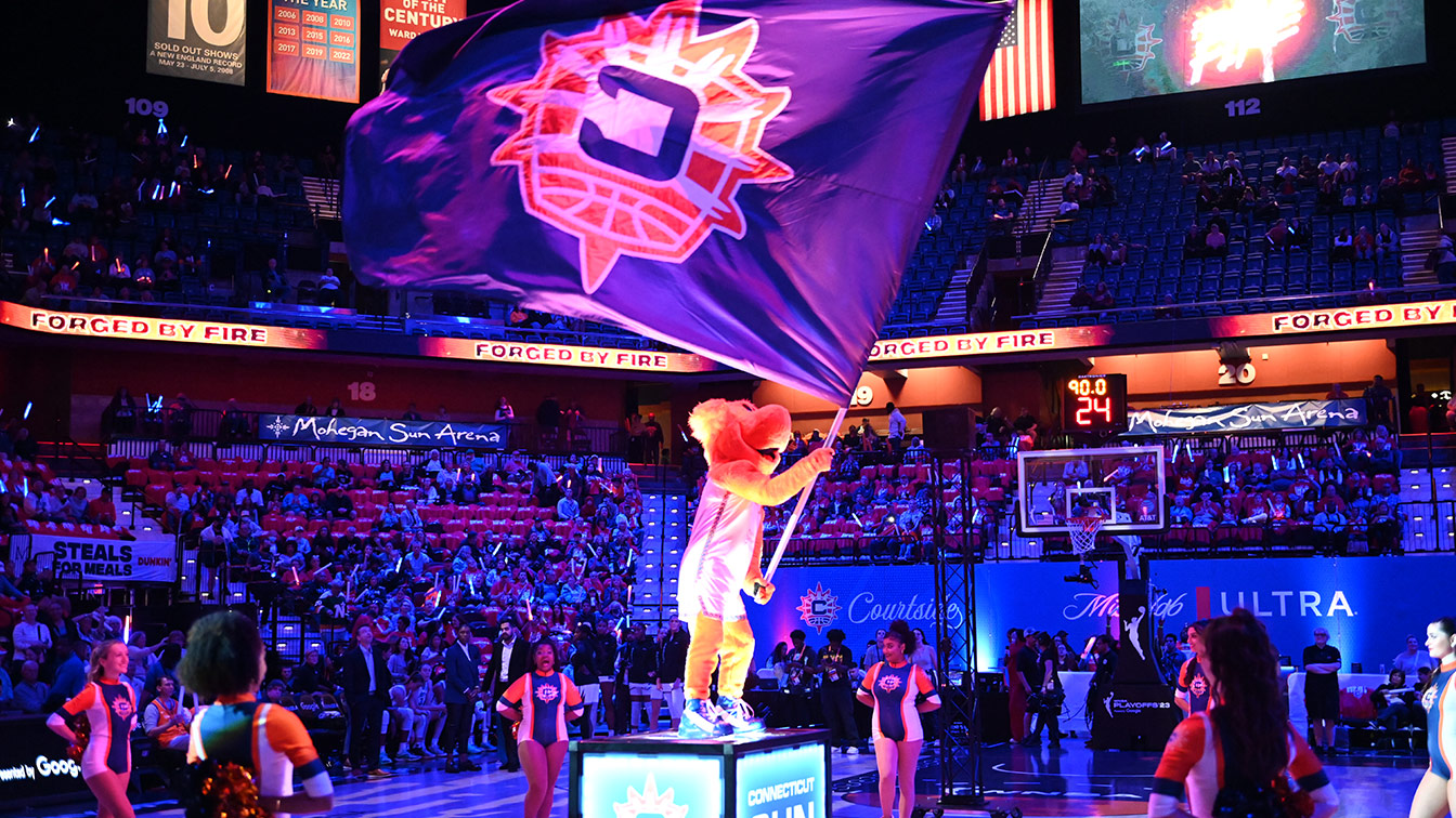 The team’s name comes from its affiliation with Mohegan Sun, and the logo – a fiery orange sunburst, a WNBA basketball and a blue ribbon with four white semicircular domes – is a modern interpretation of an ancient Mohegan symbol.